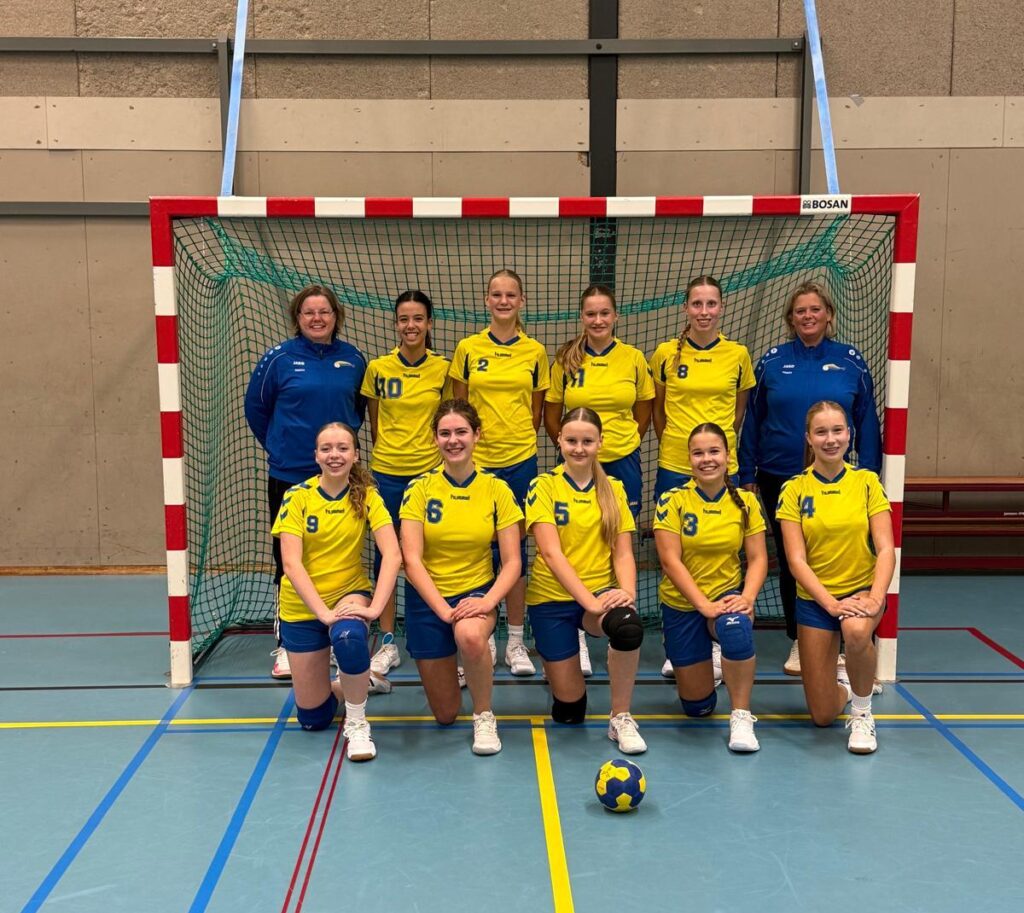 Bovenste rij: Marion (trainer/coach), Mizé, Bibyan, Karlijn, Eva, Dyana (coach)